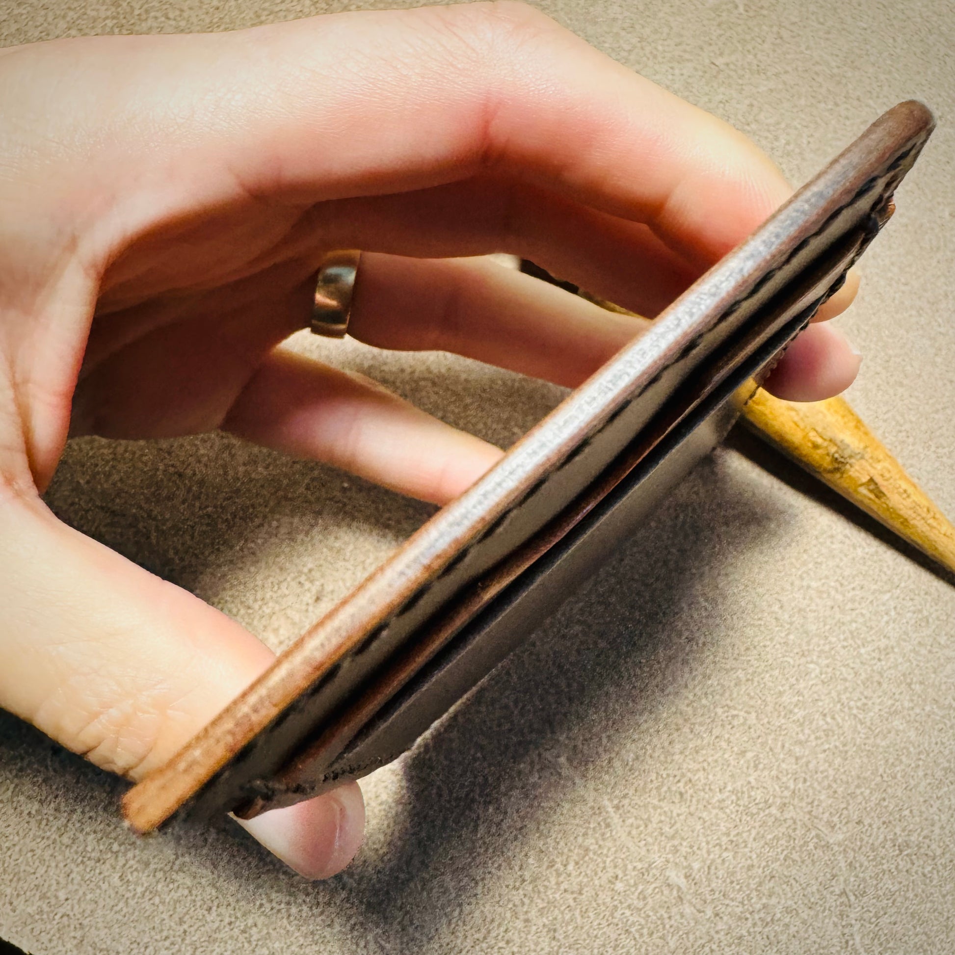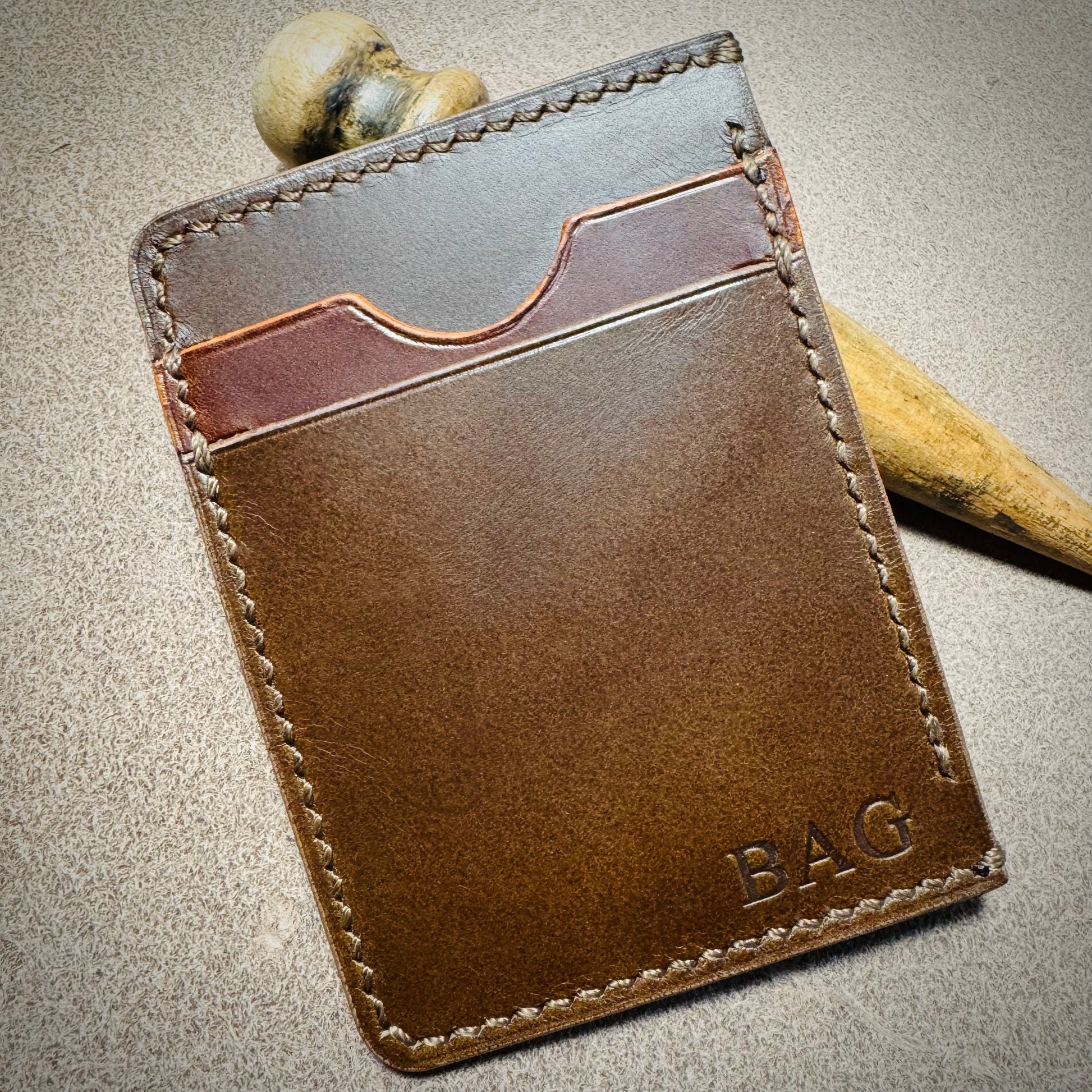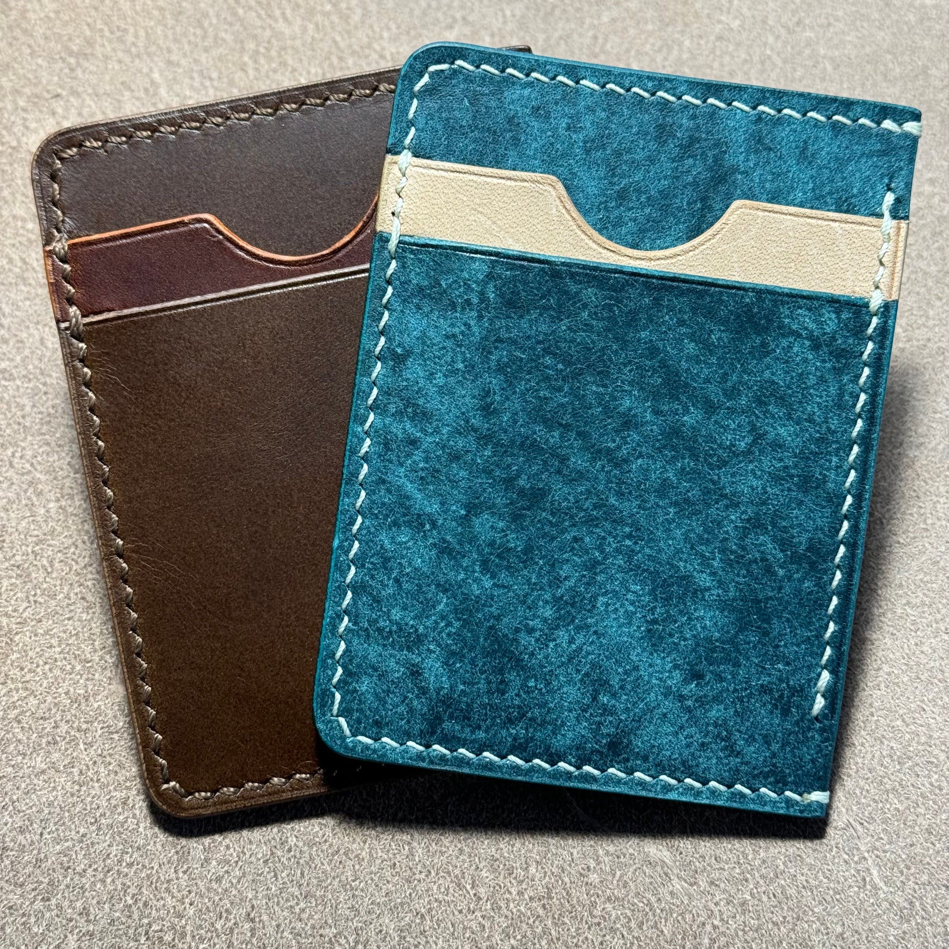 Our cardholders use the finest full-grain vegetable-tanned Italian leather from Tuscany and feature skillful saddle-stitching and burnished edges. See information below for tannery ("conceria" in Italian) provenance and the colors and names of leather articles used.