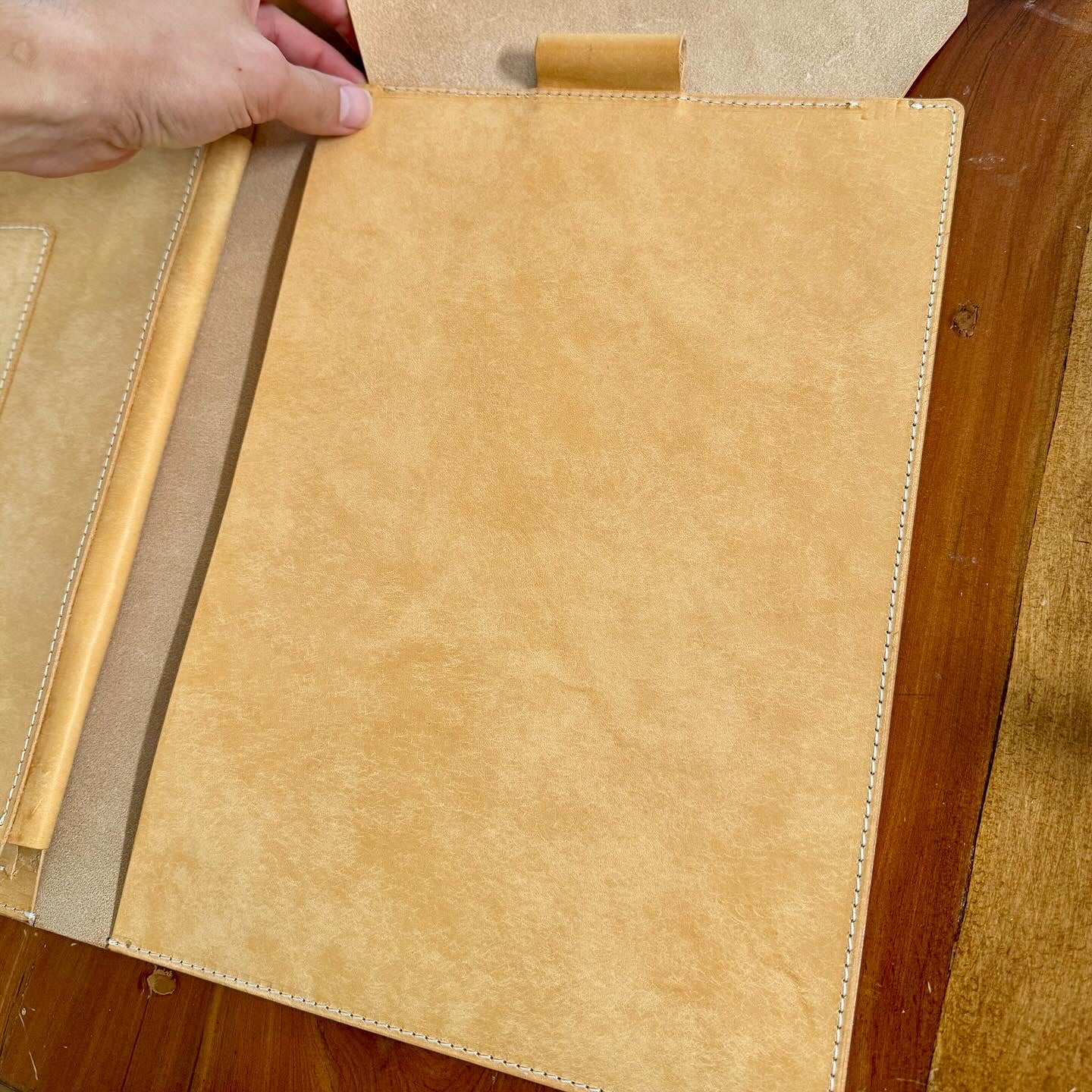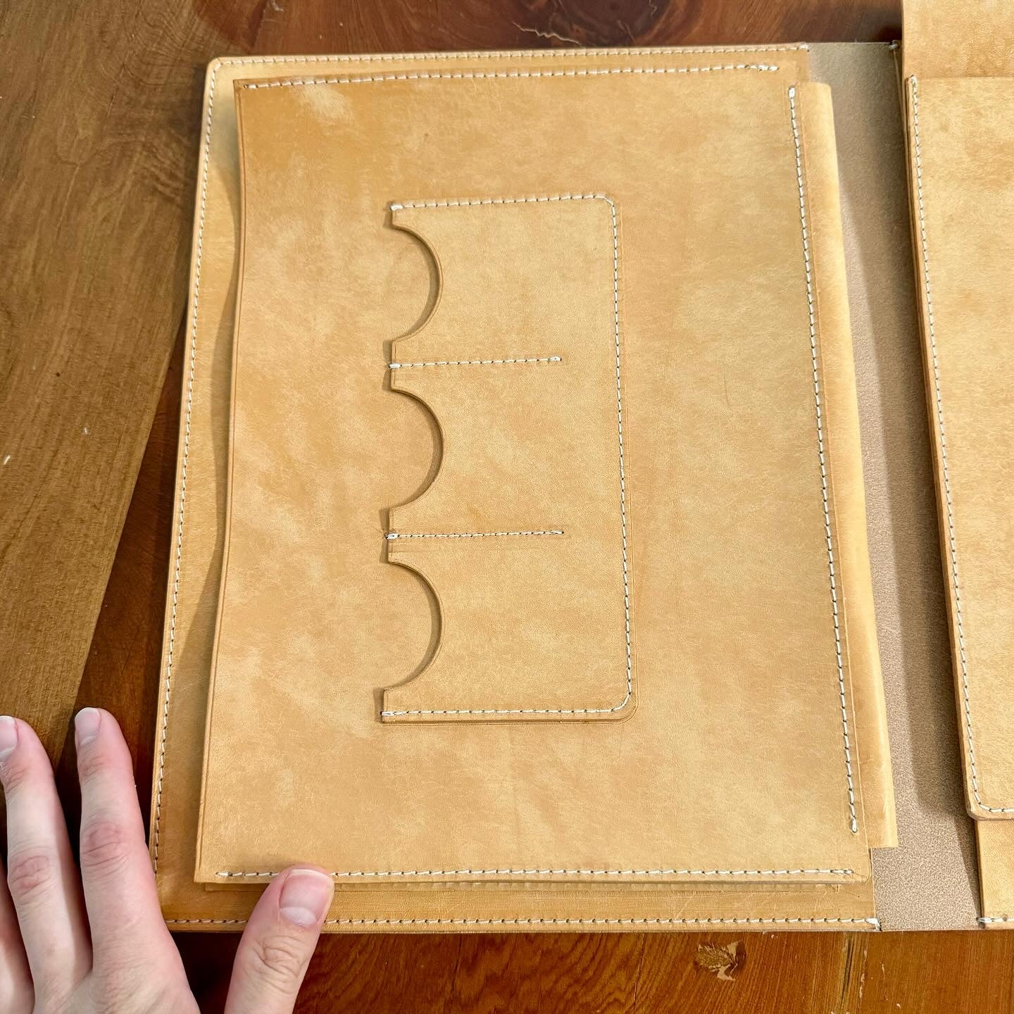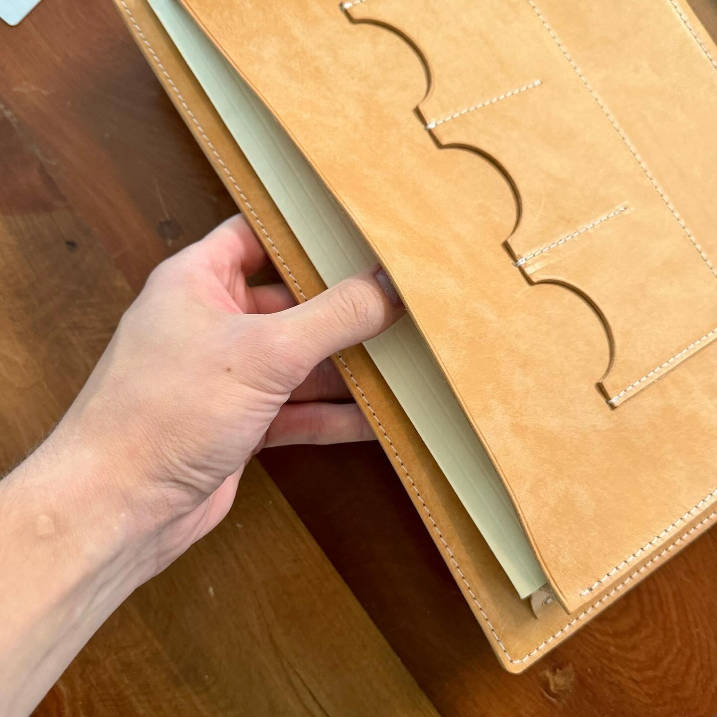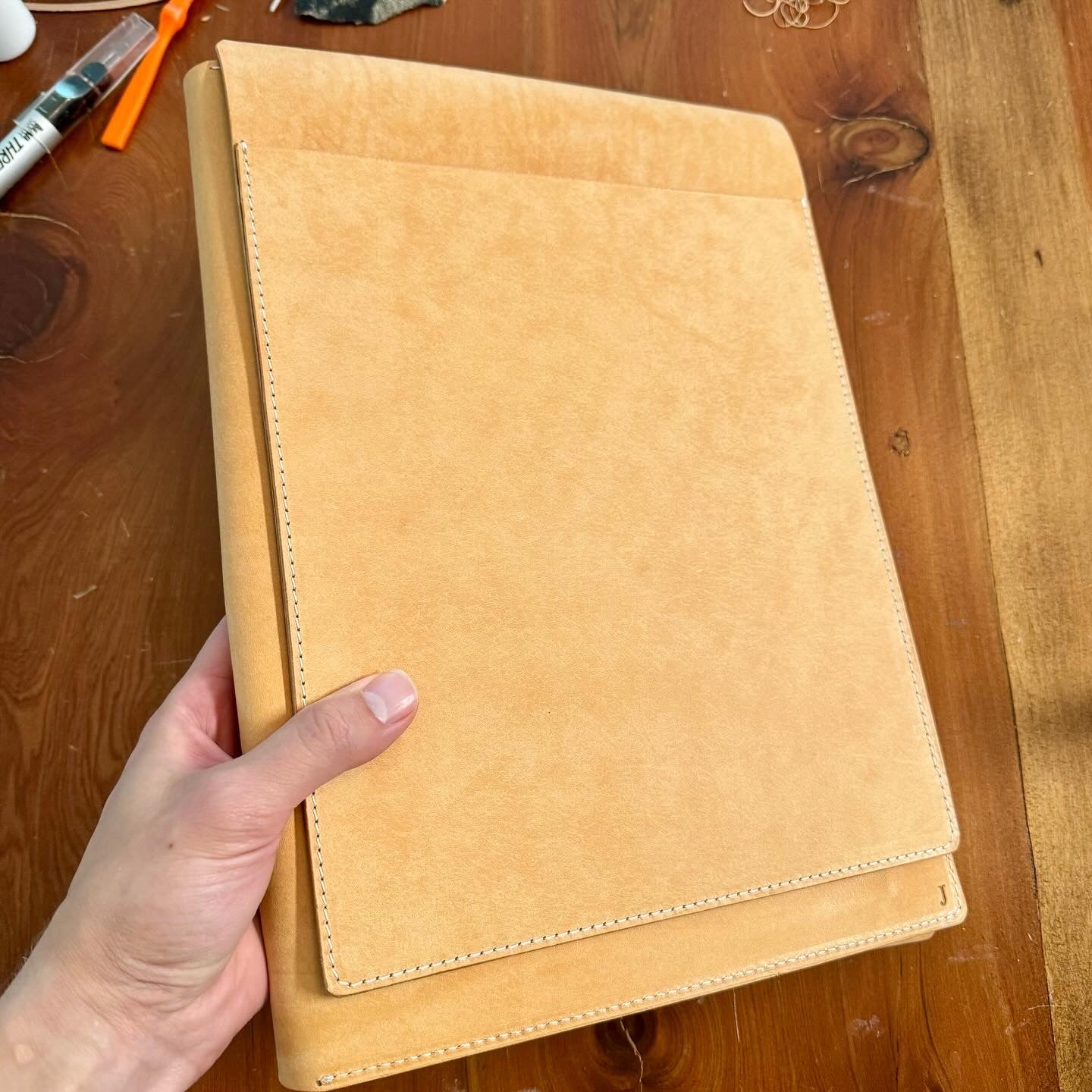 Our Branwell Folding Folio is an intermediate pattern, but some makers might find the unwieldy size a challenge when sewing by hand. With 3 card slots, a pen loop, and an expanding document pocket, the Branwell's greatest feature is a flipping sleeve to allow writing on a legal pad even when the folio is closed.