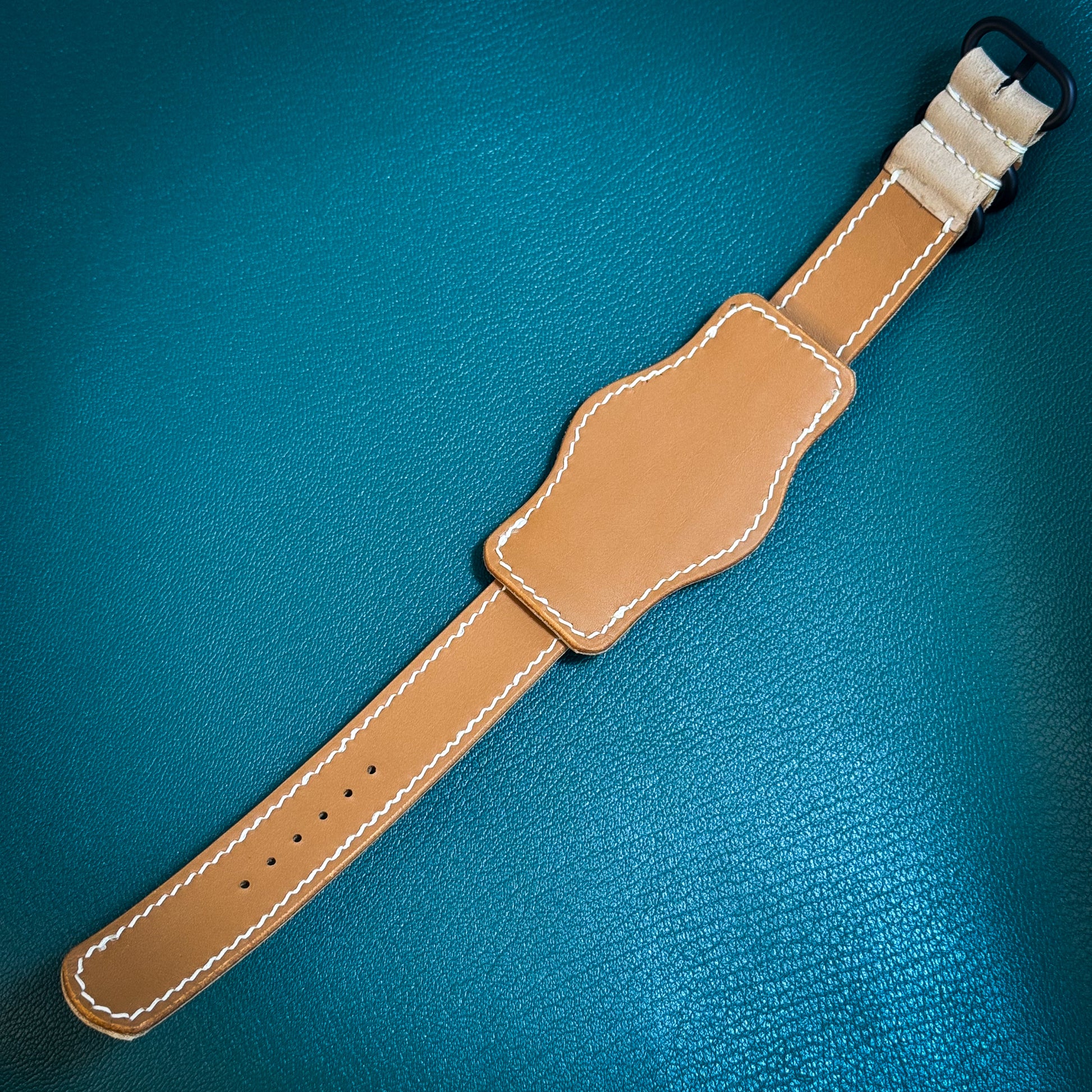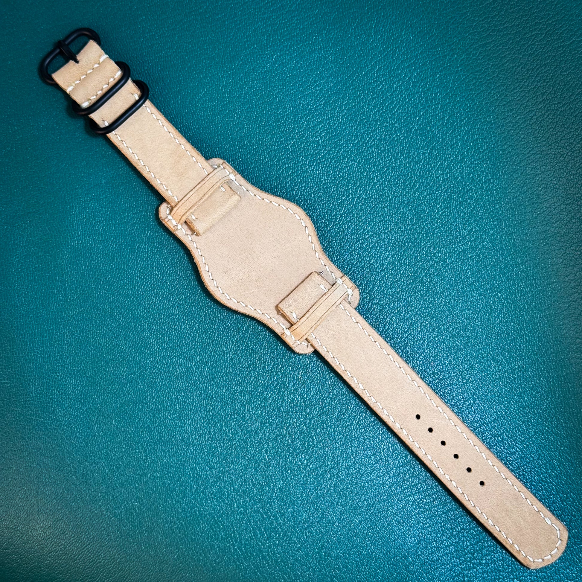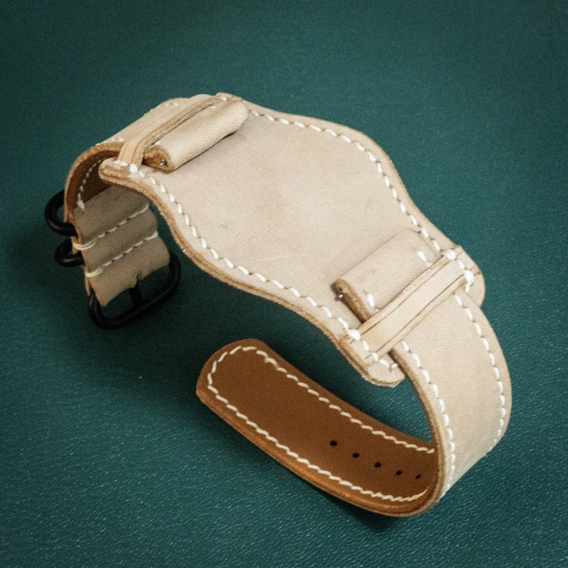 Our new Trench-Style Bund Strap is a phenomenal addition to your watch's wardrobe. Relatively rare in the world of straps, a bund creates an extremely comfortable wearing experience while acting as a canvas on which your timepiece can shine. Crafted from a wide selection of full grain veg or mineral tanned leathers, our watch straps are lined with hypo-allergenic, sweat-resistant Haas Zermatt leather for comfort, feature beautiful full-length hand stitching, and offer a variety of personalization options.