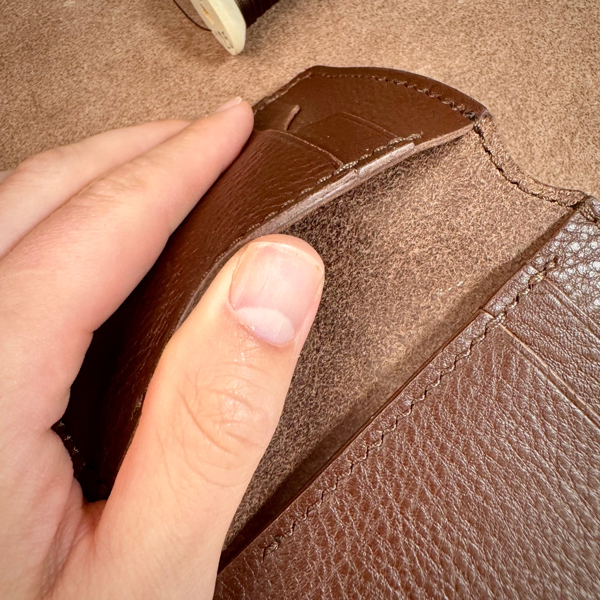 At Studio Hall, we focus mainly on minimalist cardholder designs targeting sleek efficiency, but we recognize that cash is still a popular option for many. With US currency in mind, we created the Quatrain Billfold, based off of our popular 4-pocket Quatrain Cardholder. Even with cash-carrying capability and a slightly larger card capacity than our standard Quatrain, the QB can still fit comfortably in many front pockets. Customize your Quatrain Billfold with a selection of beautiful Italian veg tan leather from Tuscany, your favorite color of thread for saddle stitching, personalized initials, and so much more.
