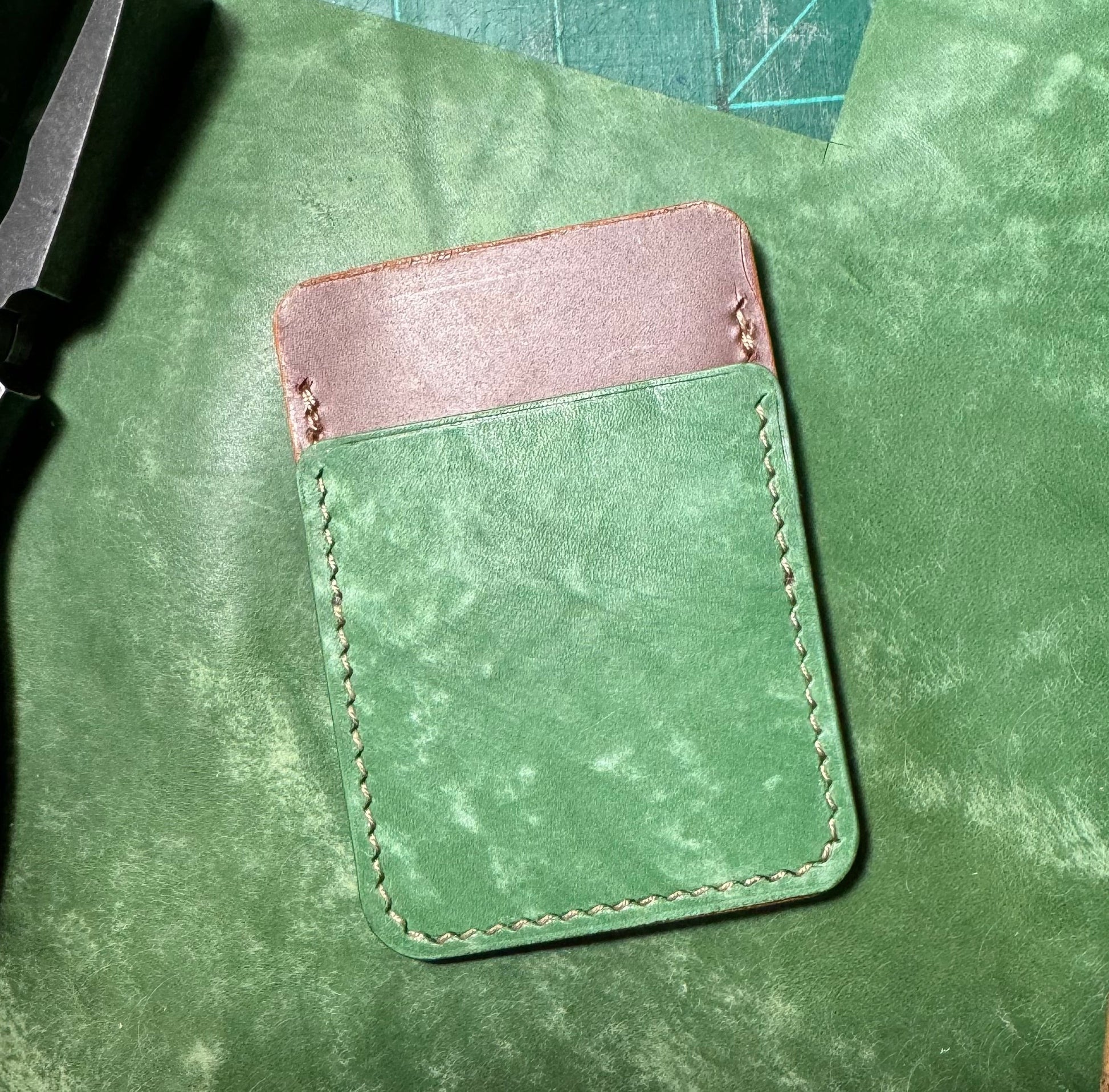 Our Trochee (/tro-kee/) Cardholder is a beginner-friendly pattern featuring 3 card slots holding 3-5 cards total. The pattern contains two pocket styles. Edge trimming, as well as beveling and creasing, will elevate your product but are not necessary. Most lower weight veg tan leather will work well with this pattern (2.5-3.5oz/1-1.4mm recommended).